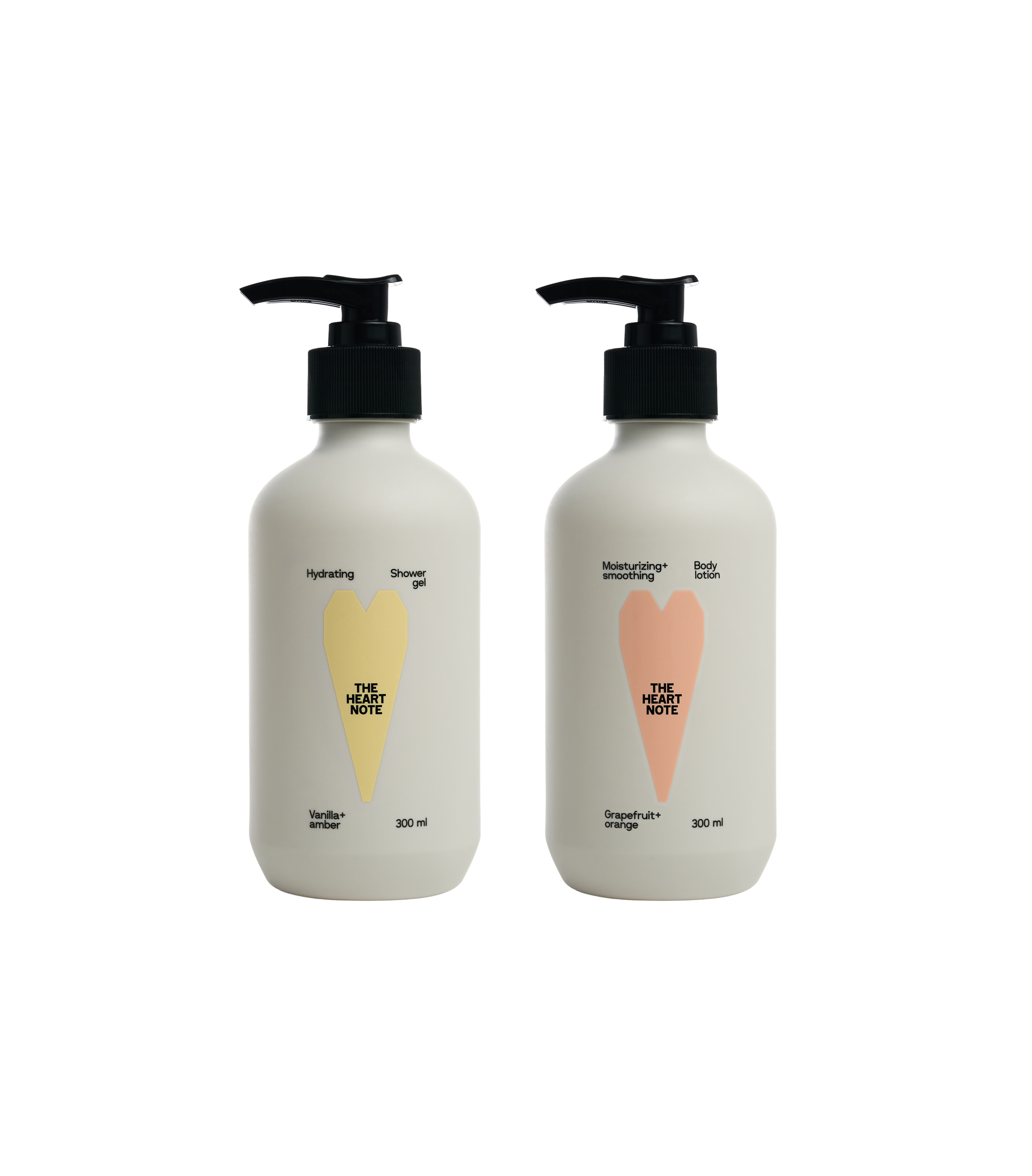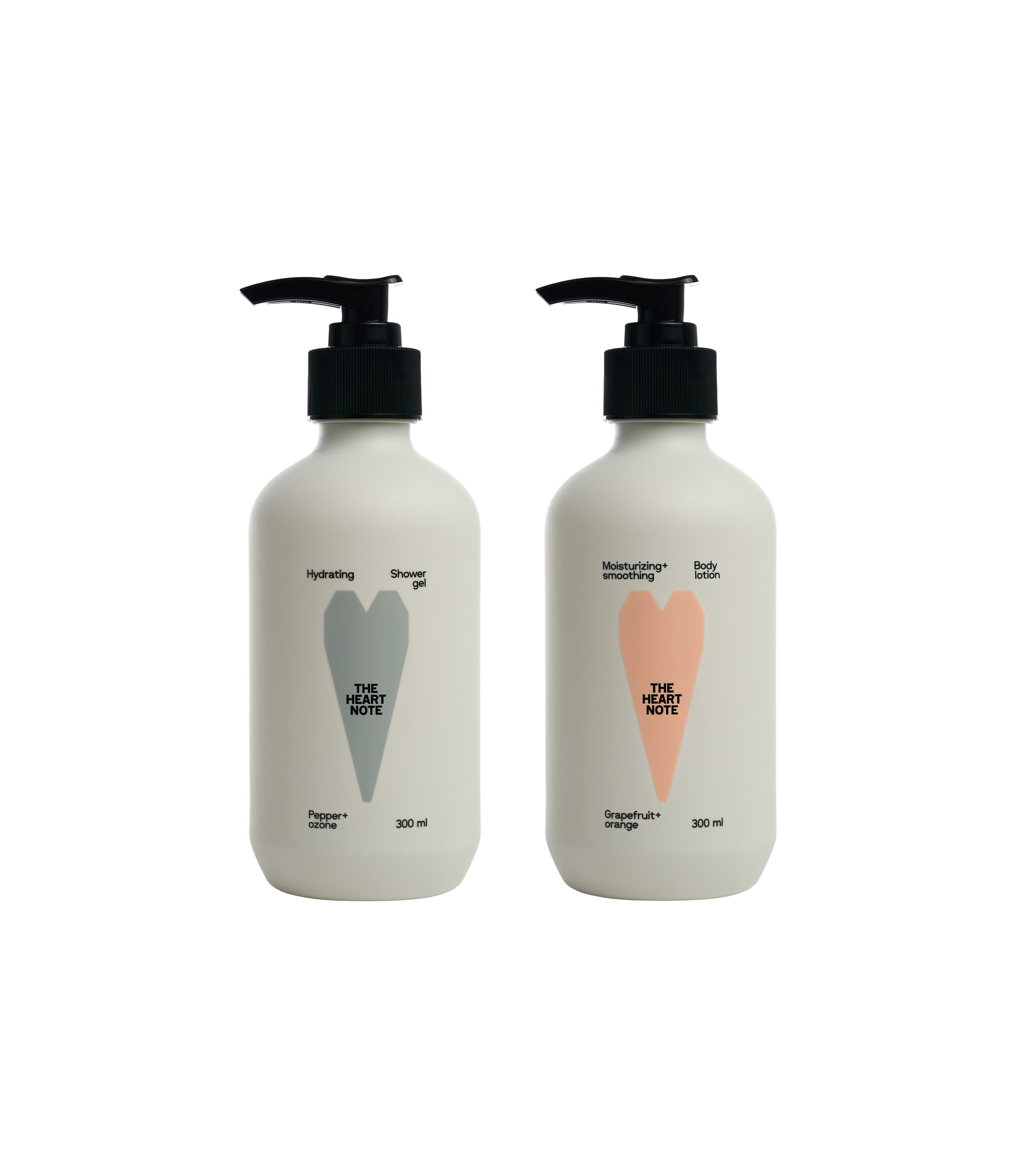 Сет включає гель для душу та лосьйон для тіла THE HEART NOTE для догляду за тілом.