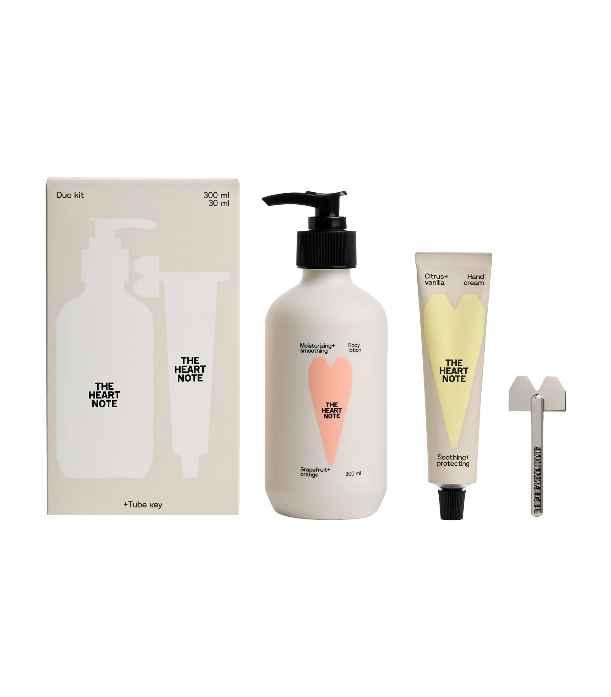 Сет включає крем для рук і лосьйон для тіла THE HEART NOTE для догляду за шкірою рук та тілом.